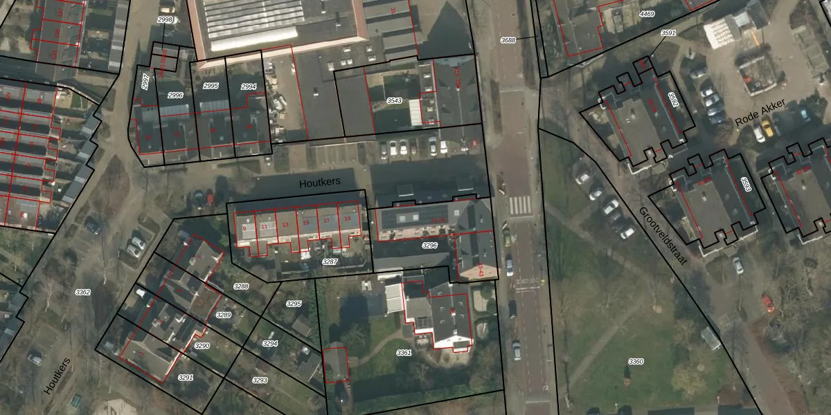 Het perceel waarop Houtkers 23 staat heeft een oppervlakte van 530 m². Dit is een groot perceel. De perceeloppervlakte wordt geregistreerd door het Kadaster. Gedetailleerde informatie over de maten van dit perceel kunt u vinden in het rapport Kadastrale kaart met maatvoering van Houtkers 23.