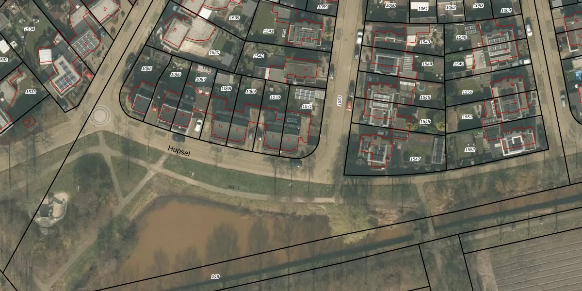 Het perceel waarop Hupsel 5 staat heeft een oppervlakte van 306 m². Dit is een groot perceel. De perceeloppervlakte wordt geregistreerd door het Kadaster. Gedetailleerde informatie over de maten van dit perceel kunt u vinden in het rapport Kadastrale kaart met maatvoering van Hupsel 5.