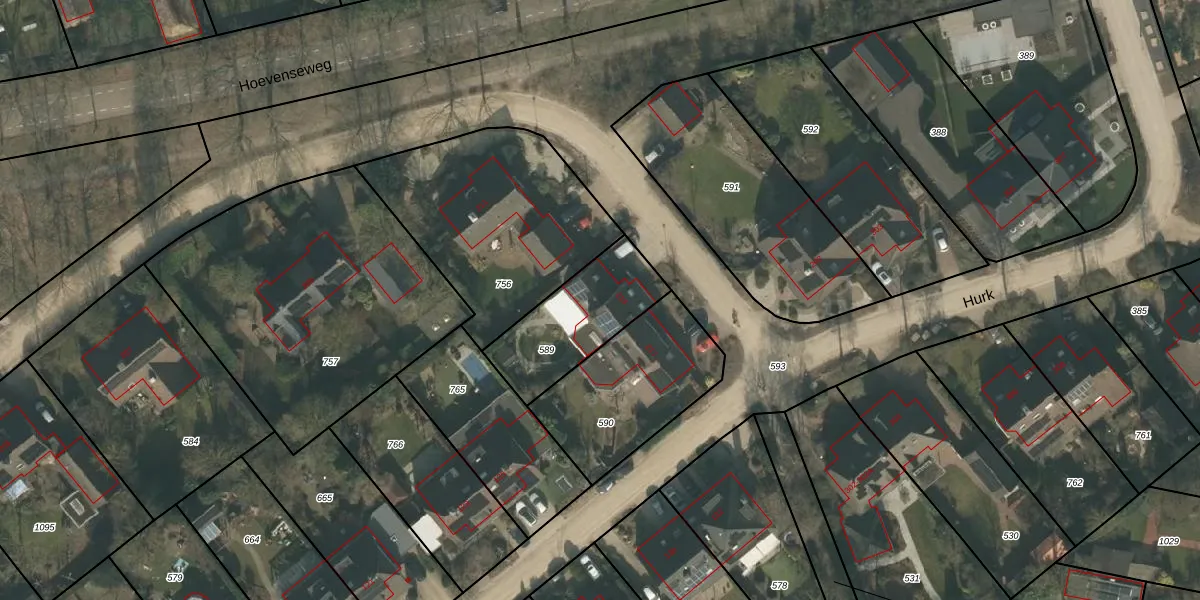 Het perceel waarop Hurk 215 staat heeft een oppervlakte van 367 m². Dit is een groot perceel. De perceeloppervlakte wordt geregistreerd door het Kadaster. Gedetailleerde informatie over de maten van dit perceel kunt u vinden in het rapport Kadastrale kaart met maatvoering van Hurk 215.