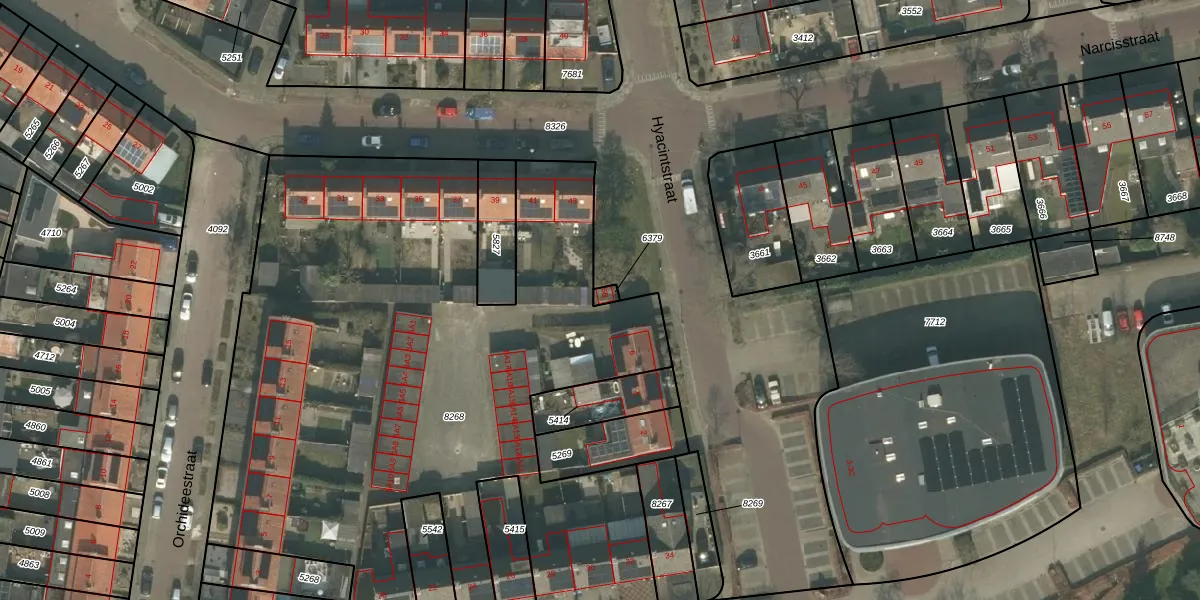 Gebruik de zoekbalk of klik op een perceel voor informatie over de adressen binnen dit perceel.