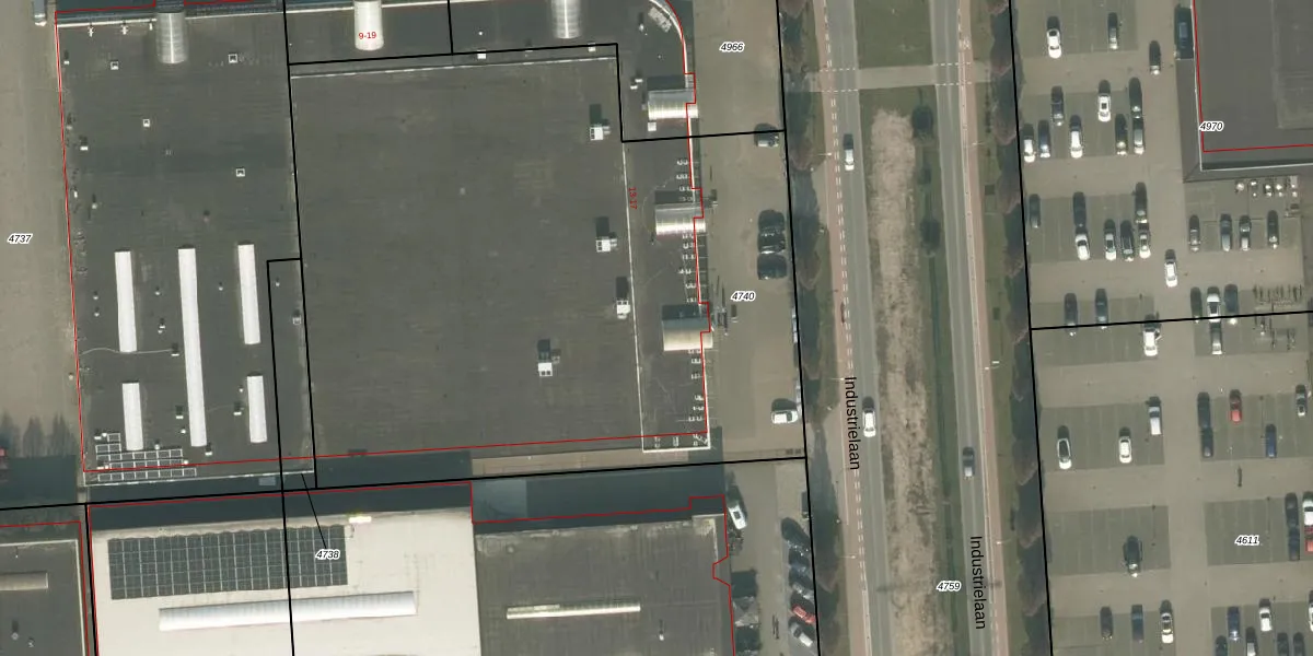 Het perceel waarop Industrielaan 13 staat heeft een oppervlakte van 4503 m². Dit is een zeer groot perceel. De perceeloppervlakte wordt geregistreerd door het Kadaster. Gedetailleerde informatie over de maten van dit perceel kunt u vinden in het rapport Kadastrale kaart met maatvoering van Industrielaan 13.