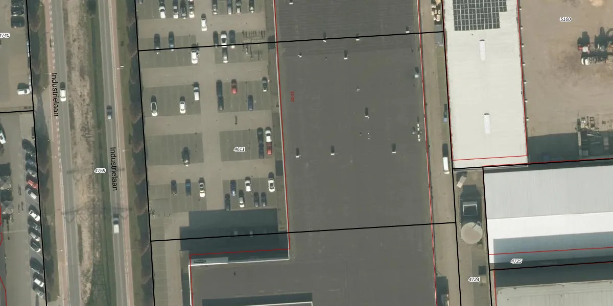 Het perceel waarop Industrielaan 18 staat heeft een oppervlakte van 6248 m². Dit is een zeer groot perceel. De perceeloppervlakte wordt geregistreerd door het Kadaster. Gedetailleerde informatie over de maten van dit perceel kunt u vinden in het rapport Kadastrale kaart met maatvoering van Industrielaan 18.