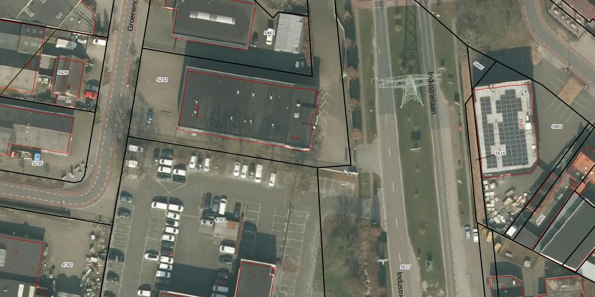 Het perceel waarop Industrielaan 3 staat heeft een oppervlakte van 2552 m². Dit is een zeer groot perceel. De perceeloppervlakte wordt geregistreerd door het Kadaster. Gedetailleerde informatie over de maten van dit perceel kunt u vinden in het rapport Kadastrale kaart met maatvoering van Industrielaan 3.