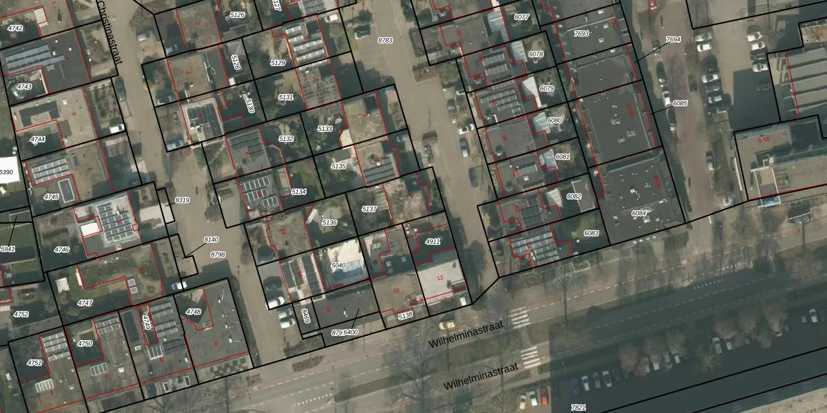 Gebruik de zoekbalk of klik op een perceel voor informatie over de adressen binnen dit perceel.