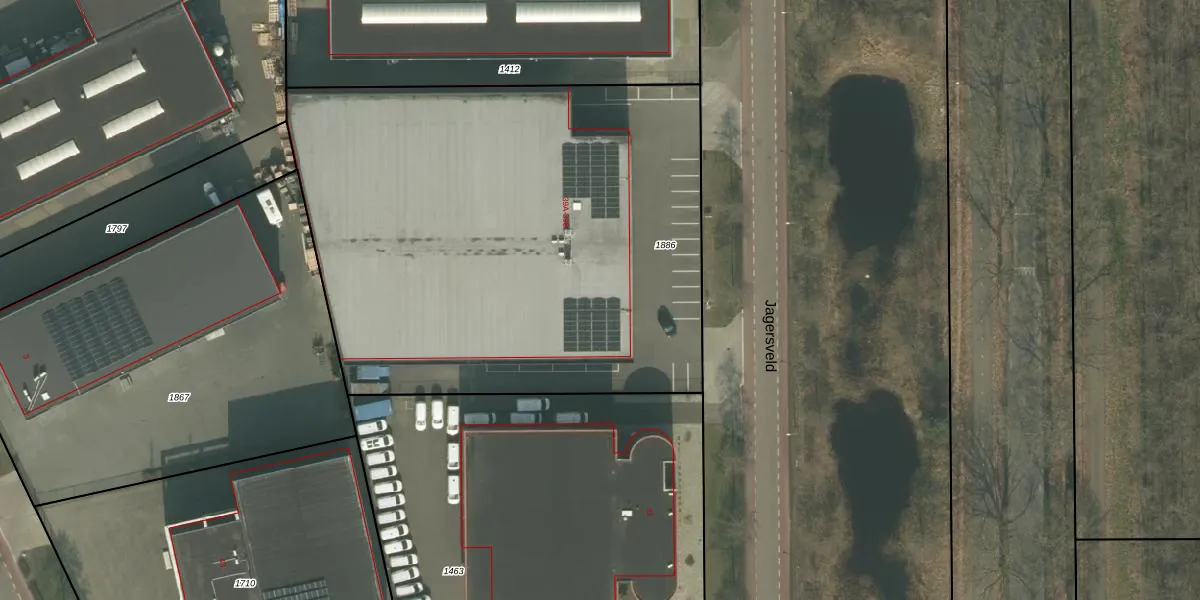 Het perceel waarop Jagersveld 39-B staat heeft een oppervlakte van 3320 m². Dit is een zeer groot perceel. De perceeloppervlakte wordt geregistreerd door het Kadaster. Gedetailleerde informatie over de maten van dit perceel kunt u vinden in het rapport Kadastrale kaart met maatvoering van Jagersveld 39-B.