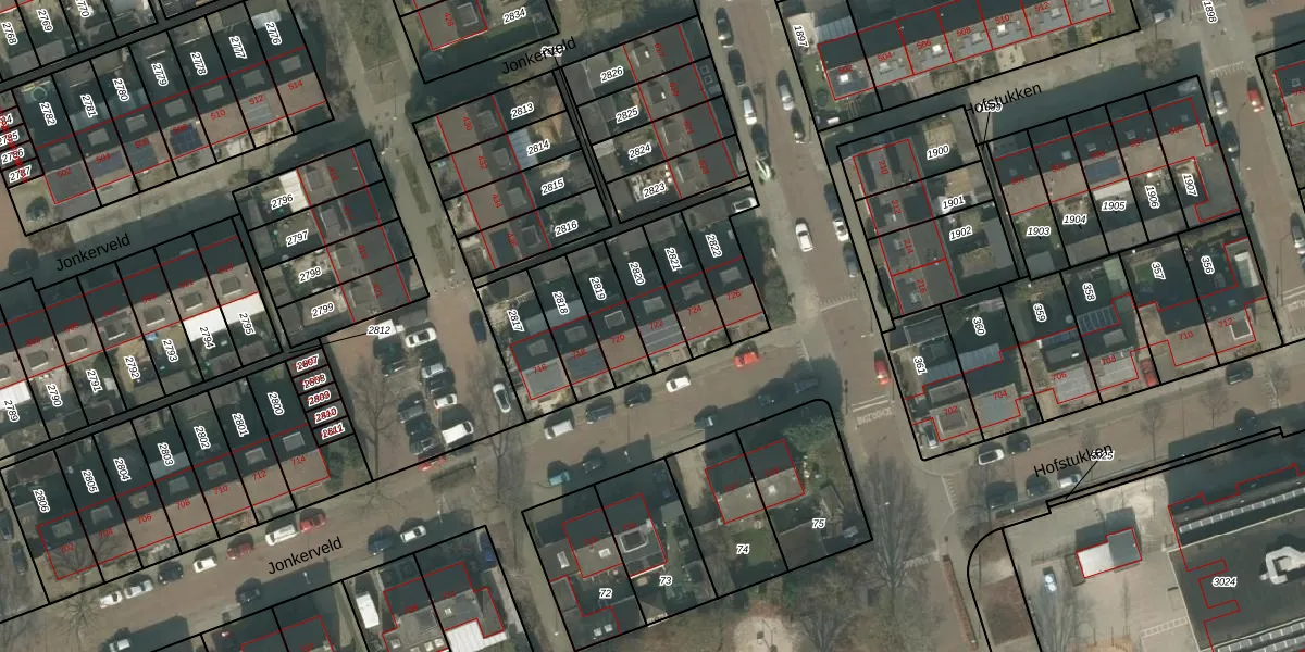 Gebruik de zoekbalk of klik op een perceel voor informatie over de adressen binnen dit perceel.