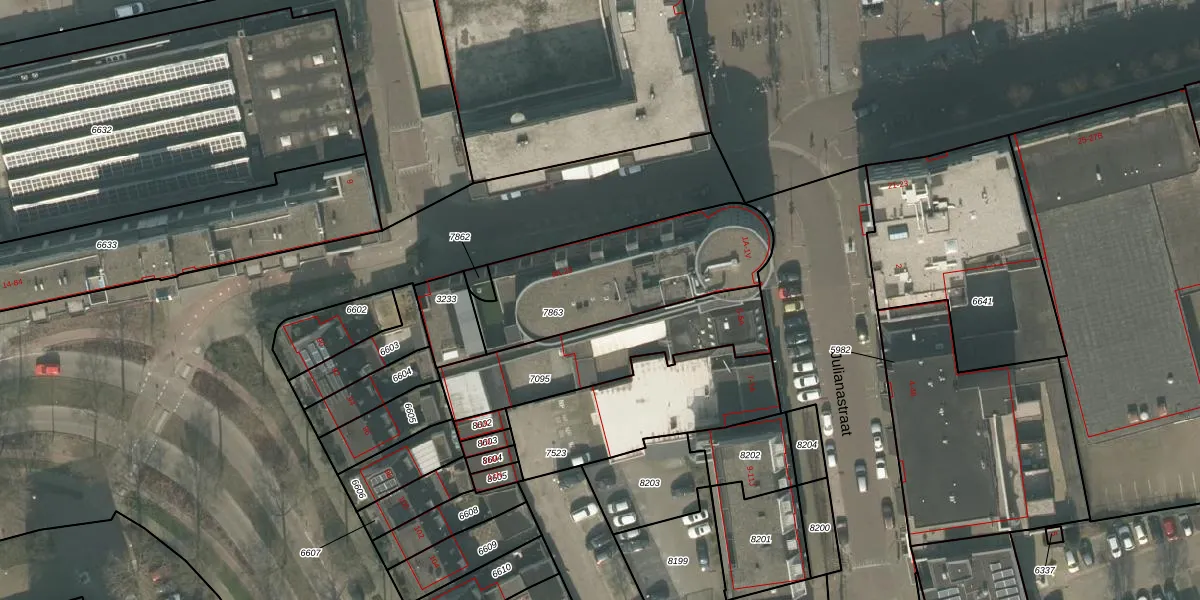 Het perceel waarop Julianastraat 1-M staat heeft een oppervlakte van 689 m². Dit is een groot perceel. De perceeloppervlakte wordt geregistreerd door het Kadaster. Gedetailleerde informatie over de maten van dit perceel kunt u vinden in het rapport Kadastrale kaart met maatvoering van Julianastraat 1-M.