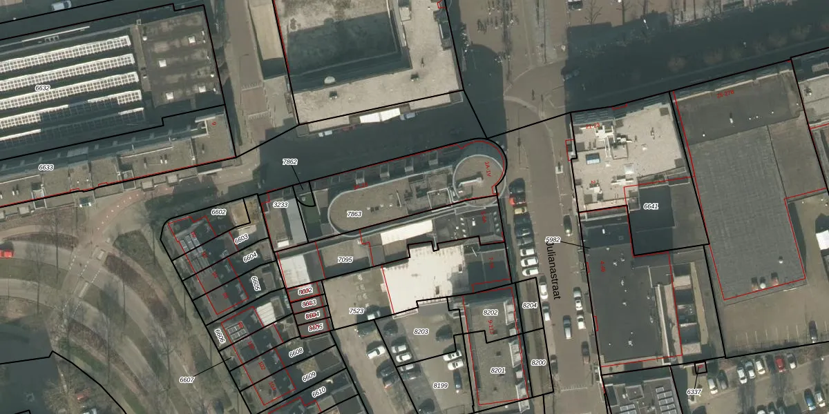 Julianastraat 1-B is gelegen op kadastraal perceel UDN00M7863. Deze kadastrale aanduiding is uniek en wordt gebruikt door het Kadaster om eigendomsrechten en andere zakelijke rechten vast te leggen. Het perceel maakt onderdeel uit van de kadastrale gemeente Uden.