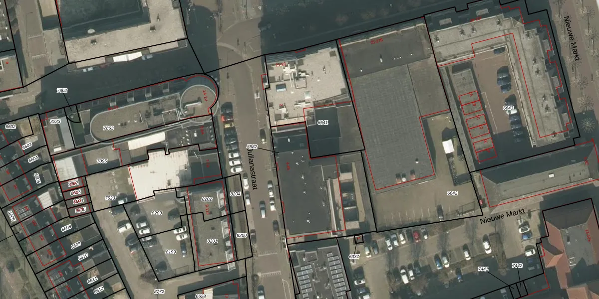 Het perceel waarop Julianastraat 24 staat heeft een oppervlakte van 965 m². Dit is een groot perceel. De perceeloppervlakte wordt geregistreerd door het Kadaster. Gedetailleerde informatie over de maten van dit perceel kunt u vinden in het rapport Kadastrale kaart met maatvoering van Julianastraat 24.
