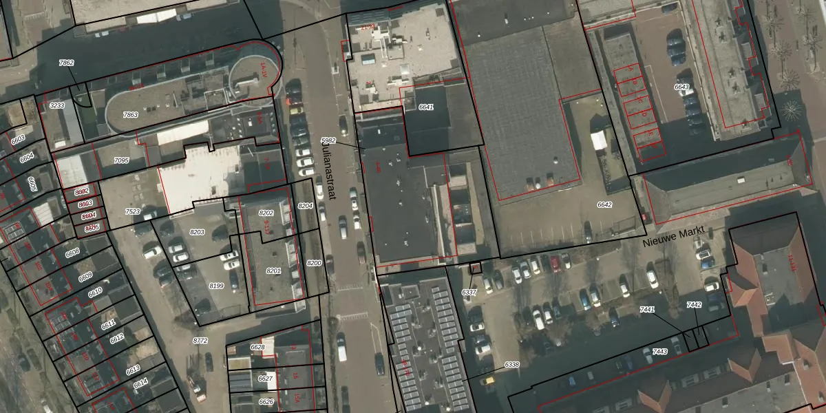 Het perceel waarop Julianastraat 42 staat heeft een oppervlakte van 965 m². Dit is een groot perceel. De perceeloppervlakte wordt geregistreerd door het Kadaster. Gedetailleerde informatie over de maten van dit perceel kunt u vinden in het rapport Kadastrale kaart met maatvoering van Julianastraat 42.