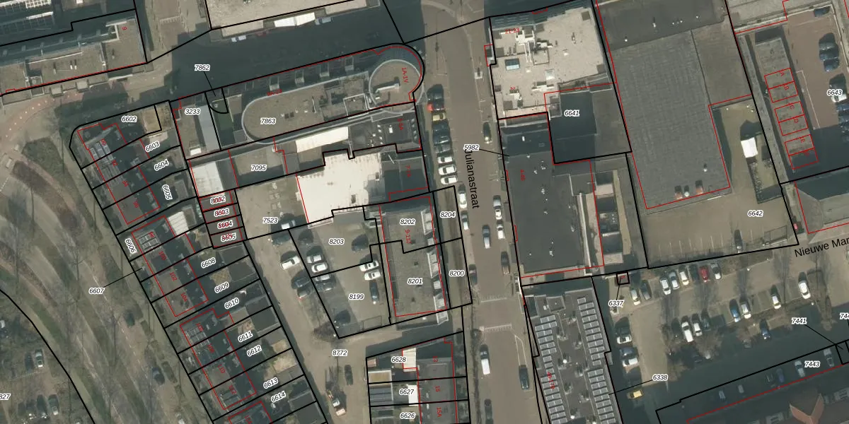 Julianastraat 9 is gelegen op kadastraal perceel UDN00M8202. Deze kadastrale aanduiding is uniek en wordt gebruikt door het Kadaster om eigendomsrechten en andere zakelijke rechten vast te leggen. Het perceel maakt onderdeel uit van de kadastrale gemeente Uden.