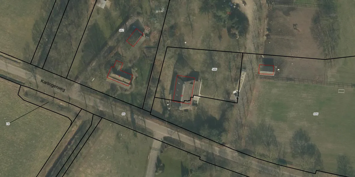 Het perceel waarop Karlingerweg 10 staat heeft een oppervlakte van 1260 m². Dit is een zeer groot perceel. De perceeloppervlakte wordt geregistreerd door het Kadaster. Gedetailleerde informatie over de maten van dit perceel kunt u vinden in het rapport Kadastrale kaart met maatvoering van Karlingerweg 10.