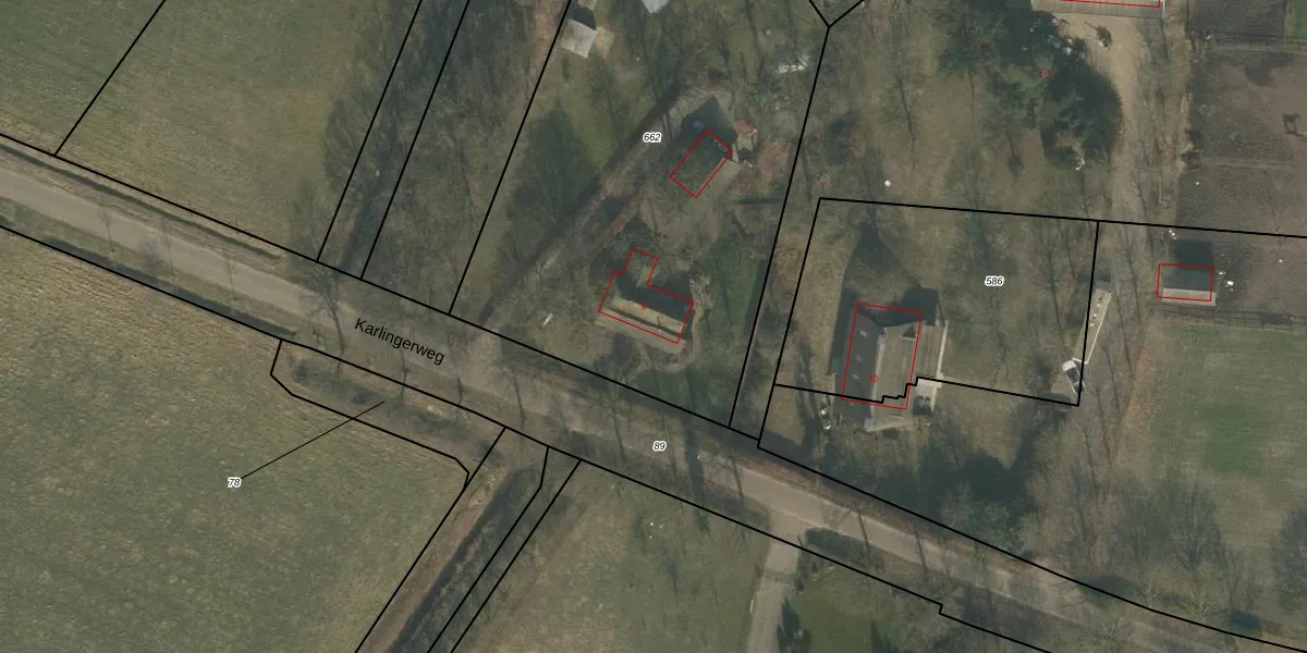 Het perceel waarop Karlingerweg 6 staat heeft een oppervlakte van 2925 m². Dit is een zeer groot perceel. De perceeloppervlakte wordt geregistreerd door het Kadaster. Gedetailleerde informatie over de maten van dit perceel kunt u vinden in het rapport Kadastrale kaart met maatvoering van Karlingerweg 6.