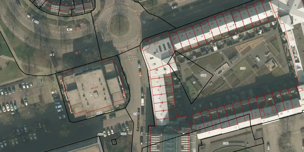 Het perceel waarop Kazernestraat 2 staat heeft een oppervlakte van 8022 m². Dit is een zeer groot perceel. De perceeloppervlakte wordt geregistreerd door het Kadaster. Gedetailleerde informatie over de maten van dit perceel kunt u vinden in het rapport Kadastrale kaart met maatvoering van Kazernestraat 2.
