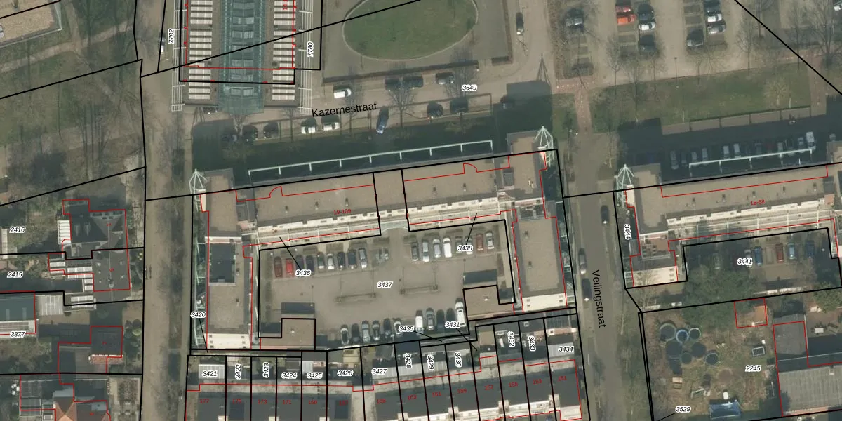 Het perceel waarop Kazernestraat 81 staat heeft een oppervlakte van 959 m². Dit is een groot perceel. De perceeloppervlakte wordt geregistreerd door het Kadaster. Gedetailleerde informatie over de maten van dit perceel kunt u vinden in het rapport Kadastrale kaart met maatvoering van Kazernestraat 81.