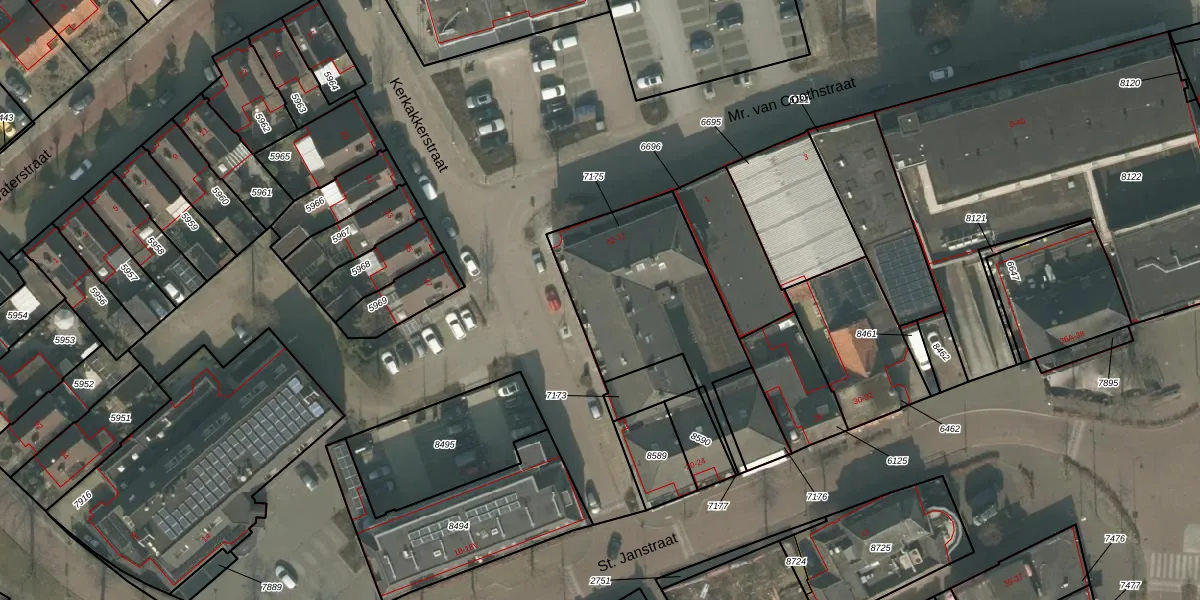 Het perceel waarop het adres ligt is UDN00-M-7175. De afkorting 'UDN00' staat voor kadastrale gemeente Uden. Het perceel is kleiner dan gemiddeld in Uden. Het perceel is 694 m² groot, terwijl het gemiddelde ligt op 3243,13 m². De grootste perceeloppervlakte in de kadastrale gemeente is 1,06 km². De kleinste oppervlakte bedraagt 0 m². Op het perceel liggen in totaal 15 adressen. De huidige grenzen van het perceel zijn digitaal in de Basisregistratie Kadaster (BRK) geregistreerd op 04-09-2009.