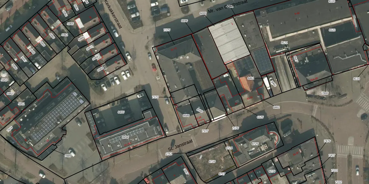 Het perceel waarop het adres ligt is UDN00-M-7173. De afkorting 'UDN00' staat voor kadastrale gemeente Uden. Het perceel is kleiner dan gemiddeld in Uden. Het perceel is 95 m² groot, terwijl het gemiddelde ligt op 3242,2 m². De grootste perceeloppervlakte in de kadastrale gemeente is 1,06 km². De kleinste oppervlakte bedraagt 0 m². Er zijn 2 adressen aanwezig op het perceel. De huidige grenzen van het perceel zijn digitaal in de Basisregistratie Kadaster (BRK) geregistreerd op 04-04-2024.