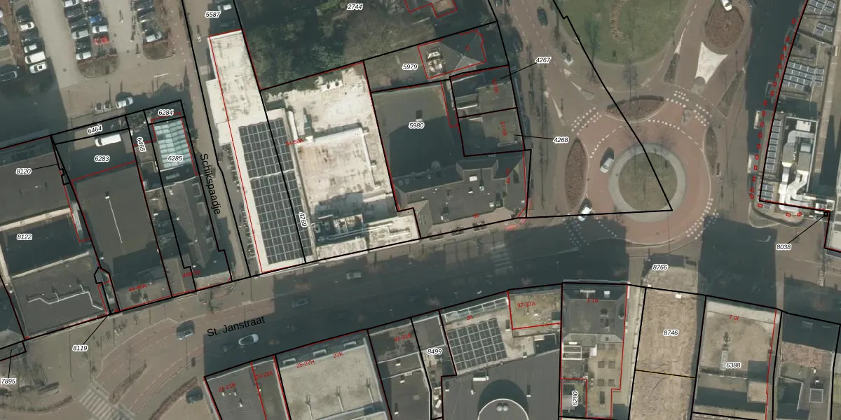 Het perceel waarop het adres ligt is UDN00-M-5980. De afkorting 'UDN00' staat voor kadastrale gemeente Uden. Het perceel is kleiner dan gemiddeld in Uden. Het perceel is 852 m² groot, terwijl het gemiddelde ligt op 3254,39 m². Het kleinste perceel in de kadastrale gemeente is 0 m² groot. De grootste perceeloppervlakte is 1,06 km². Er zijn 12 adressen aanwezig op het perceel. In de Basisregistratie Kadaster (BRK) werden de grenzen van het perceel geregistreerd op 11-01-2023.