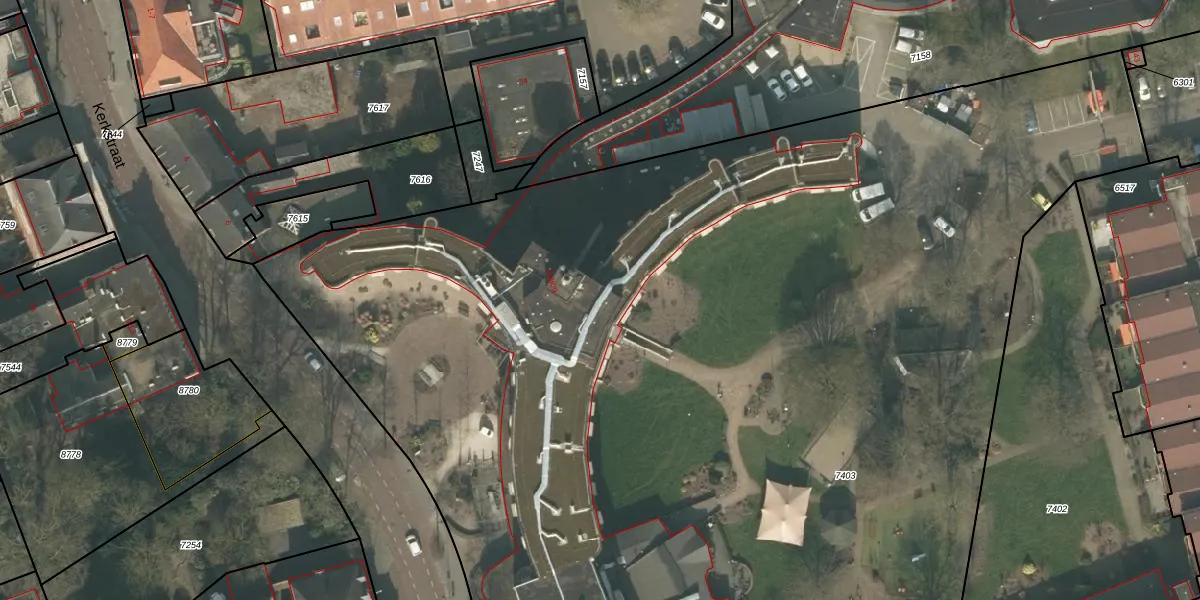 Het perceel waarop Kerkstraat 8-K-108 staat heeft een oppervlakte van 9672 m². Dit is een zeer groot perceel. De perceeloppervlakte wordt geregistreerd door het Kadaster. Gedetailleerde informatie over de maten van dit perceel kunt u vinden in het rapport Kadastrale kaart met maatvoering van Kerkstraat 8-K-108.