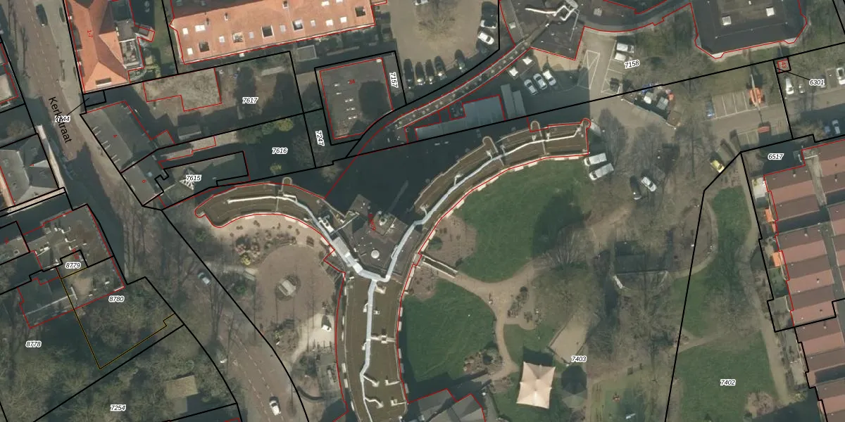 Het perceel waarop Kerkstraat 8-K-109 staat heeft een oppervlakte van 9672 m². Dit is een zeer groot perceel. De perceeloppervlakte wordt geregistreerd door het Kadaster. Gedetailleerde informatie over de maten van dit perceel kunt u vinden in het rapport Kadastrale kaart met maatvoering van Kerkstraat 8-K-109.
