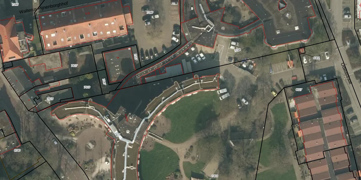 Het perceel waarop het adres ligt is UDN00-M-7403. De afkorting 'UDN00' staat voor kadastrale gemeente Uden. De oppervlakte van het perceel is 9672 m². Dat is groter dan gemiddeld in Uden, waar de gemiddelde perceeloppervlakte op 3255,8 m² ligt. Het grootste perceel in de kadastrale gemeente is 1,06 km². Het kleinste perceel heeft een oppervlakte van 0 m². Op het perceel liggen in totaal 139 adressen. In de Basisregistratie Kadaster (BRK) werden de grenzen van het perceel geregistreerd op 16-07-2009.