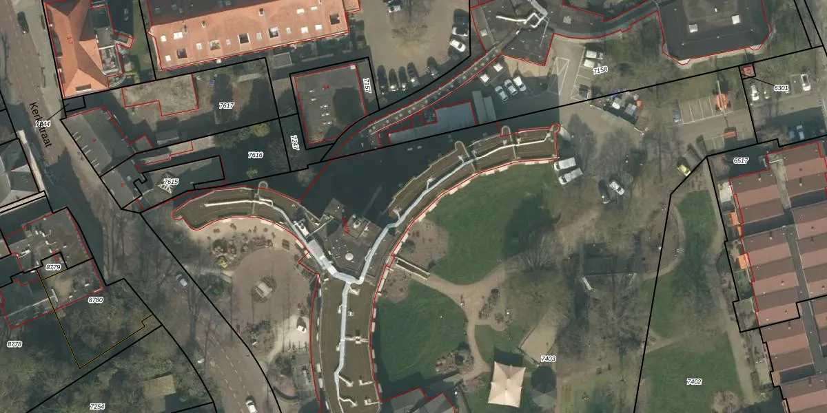Het perceel waarop Kerkstraat 8-K-310 staat heeft een oppervlakte van 9672 m². Dit is een zeer groot perceel. De perceeloppervlakte wordt geregistreerd door het Kadaster. Gedetailleerde informatie over de maten van dit perceel kunt u vinden in het rapport Kadastrale kaart met maatvoering van Kerkstraat 8-K-310.
