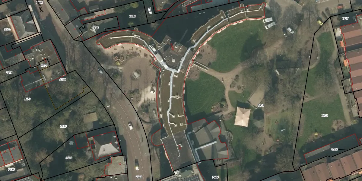Het perceel waarop Kerkstraat 8-K-404 staat heeft een oppervlakte van 9672 m². Dit is een zeer groot perceel. De perceeloppervlakte wordt geregistreerd door het Kadaster. Gedetailleerde informatie over de maten van dit perceel kunt u vinden in het rapport Kadastrale kaart met maatvoering van Kerkstraat 8-K-404.