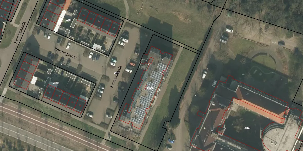 Het perceel waarop Kersengaarde 38 staat heeft een oppervlakte van 2340 m². Dit is een zeer groot perceel. De perceeloppervlakte wordt geregistreerd door het Kadaster. Gedetailleerde informatie over de maten van dit perceel kunt u vinden in het rapport Kadastrale kaart met maatvoering van Kersengaarde 38.