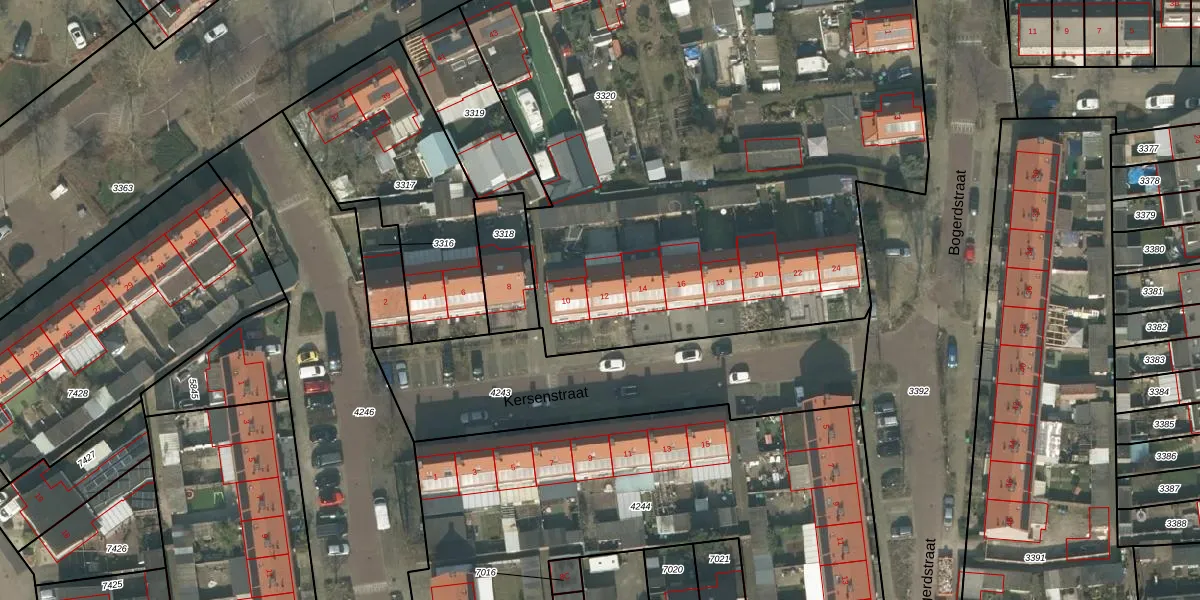 Kersenstraat 12 is gelegen op kadastraal perceel UDN00L3320. Deze kadastrale aanduiding is uniek en wordt gebruikt door het Kadaster om eigendomsrechten en andere zakelijke rechten vast te leggen. Het perceel maakt onderdeel uit van de kadastrale gemeente Uden.