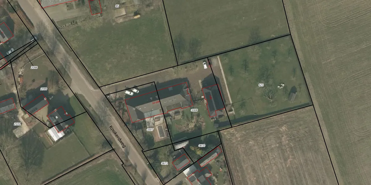 Knokerdweg 10-A is gelegen op kadastraal perceel UDN00P3308. Deze kadastrale aanduiding is uniek en wordt gebruikt door het Kadaster om eigendomsrechten en andere zakelijke rechten vast te leggen. Het perceel maakt onderdeel uit van de kadastrale gemeente Uden.