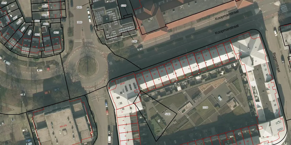 Het perceel waarop Koopmanstraat 24 staat heeft een oppervlakte van 8022 m². Dit is een zeer groot perceel. De perceeloppervlakte wordt geregistreerd door het Kadaster. Gedetailleerde informatie over de maten van dit perceel kunt u vinden in het rapport Kadastrale kaart met maatvoering van Koopmanstraat 24.