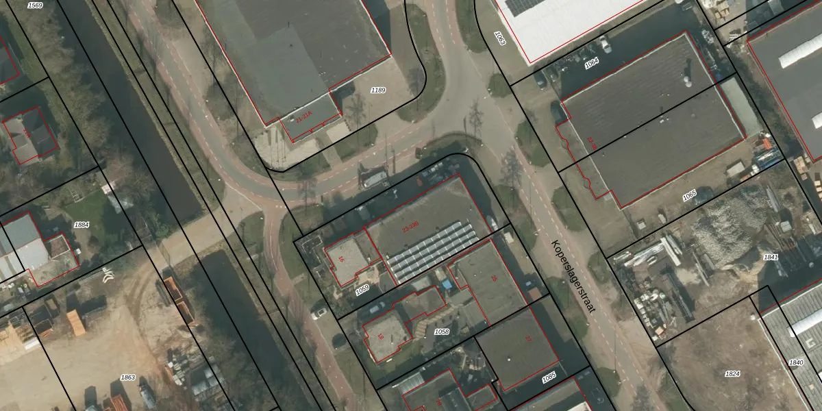 Het perceel waarop Koperslagerstraat 23-A staat heeft een oppervlakte van 1045 m². Dit is een zeer groot perceel. De perceeloppervlakte wordt geregistreerd door het Kadaster. Gedetailleerde informatie over de maten van dit perceel kunt u vinden in het rapport Kadastrale kaart met maatvoering van Koperslagerstraat 23-A.