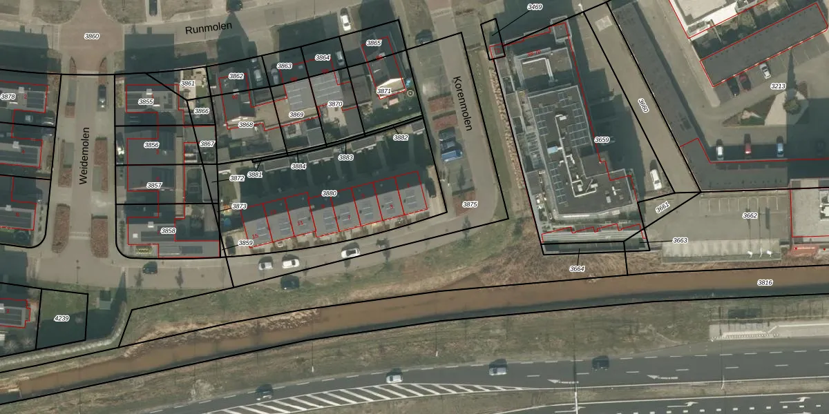 Het perceel waarop het adres ligt is UDN00-I-3880. De afkorting 'UDN00' staat voor kadastrale gemeente Uden. Het perceel is kleiner dan gemiddeld in Uden. Het perceel is 1227 m² groot, terwijl het gemiddelde ligt op 3241,89 m². De grootste perceeloppervlakte in de kadastrale gemeente is 1,06 km². De kleinste oppervlakte bedraagt 0 m². Er zijn 8 adressen aanwezig op het perceel. De huidige grenzen van het perceel zijn digitaal in de Basisregistratie Kadaster (BRK) geregistreerd op 12-10-2020.