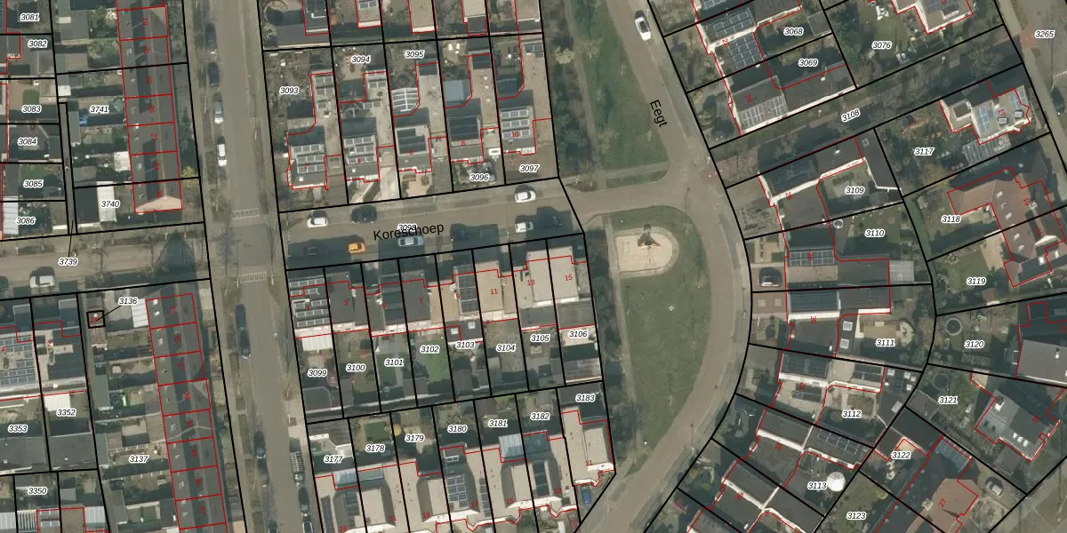 Het perceel waarop Koreschoep 13 staat heeft een oppervlakte van 195 m². Dit is een middelgroot perceel. De perceeloppervlakte wordt geregistreerd door het Kadaster. Gedetailleerde informatie over de maten van dit perceel kunt u vinden in het rapport Kadastrale kaart met maatvoering van Koreschoep 13.