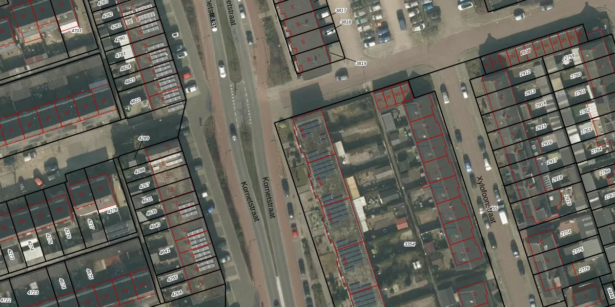 Het perceel waarop Kornetstraat 28 staat heeft een oppervlakte van 4457 m². Dit is een zeer groot perceel. De perceeloppervlakte wordt geregistreerd door het Kadaster. Gedetailleerde informatie over de maten van dit perceel kunt u vinden in het rapport Kadastrale kaart met maatvoering van Kornetstraat 28.