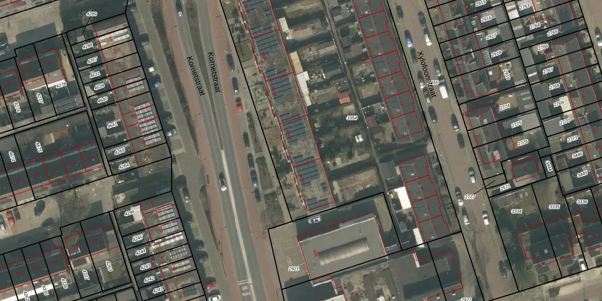 Het perceel waarop Kornetstraat 50 staat heeft een oppervlakte van 4457 m². Dit is een zeer groot perceel. De perceeloppervlakte wordt geregistreerd door het Kadaster. Gedetailleerde informatie over de maten van dit perceel kunt u vinden in het rapport Kadastrale kaart met maatvoering van Kornetstraat 50.