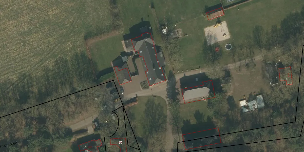Het perceel waarop Kraaienweg 1 staat heeft een oppervlakte van 5,2 ha. Dit is een zeer groot perceel. De perceeloppervlakte wordt geregistreerd door het Kadaster. Gedetailleerde informatie over de maten van dit perceel kunt u vinden in het rapport Kadastrale kaart met maatvoering van Kraaienweg 1.