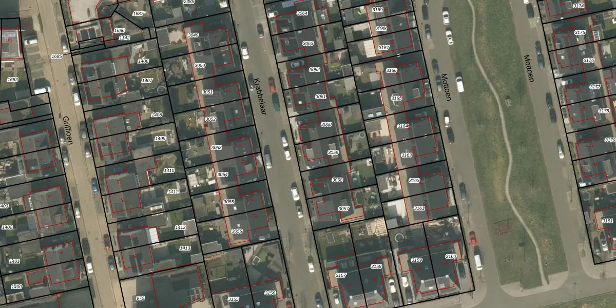 Gebruik de zoekbalk of klik op een perceel voor informatie over de adressen binnen dit perceel.
