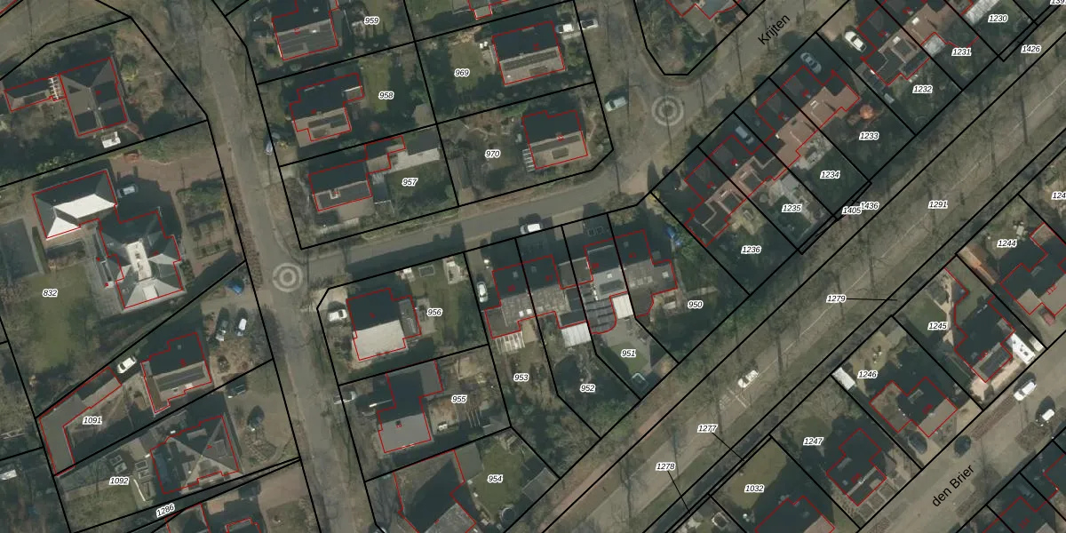 Krijten 37 is gelegen op kadastraal perceel UDN00S952. Deze kadastrale aanduiding is uniek en wordt gebruikt door het Kadaster om eigendomsrechten en andere zakelijke rechten vast te leggen. Het perceel maakt onderdeel uit van de kadastrale gemeente Uden.