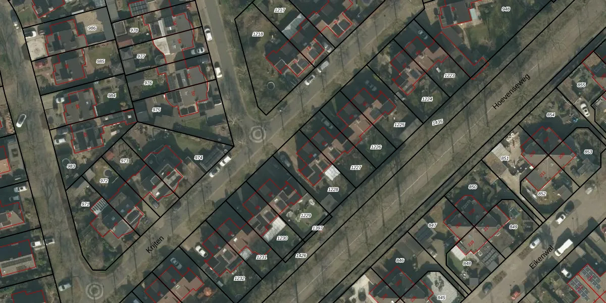 Het perceel waarop Krijten 59 staat heeft een oppervlakte van 331 m². Dit is een groot perceel. De perceeloppervlakte wordt geregistreerd door het Kadaster. Gedetailleerde informatie over de maten van dit perceel kunt u vinden in het rapport Kadastrale kaart met maatvoering van Krijten 59.