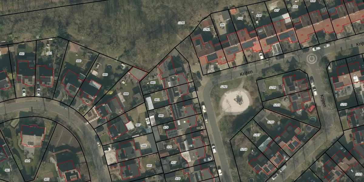Het perceel waarop Krijten 62 staat heeft een oppervlakte van 257 m². Dit is een middelgroot perceel. De perceeloppervlakte wordt geregistreerd door het Kadaster. Gedetailleerde informatie over de maten van dit perceel kunt u vinden in het rapport Kadastrale kaart met maatvoering van Krijten 62.