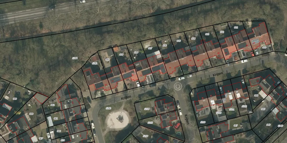 Het perceel waarop Krijten 72 staat heeft een oppervlakte van 310 m². Dit is een groot perceel. De perceeloppervlakte wordt geregistreerd door het Kadaster. Gedetailleerde informatie over de maten van dit perceel kunt u vinden in het rapport Kadastrale kaart met maatvoering van Krijten 72.