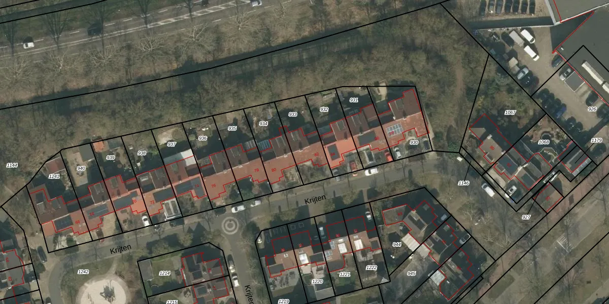 Het perceel waarop Krijten 82 staat heeft een oppervlakte van 288 m². Dit is een middelgroot perceel. De perceeloppervlakte wordt geregistreerd door het Kadaster. Gedetailleerde informatie over de maten van dit perceel kunt u vinden in het rapport Kadastrale kaart met maatvoering van Krijten 82.