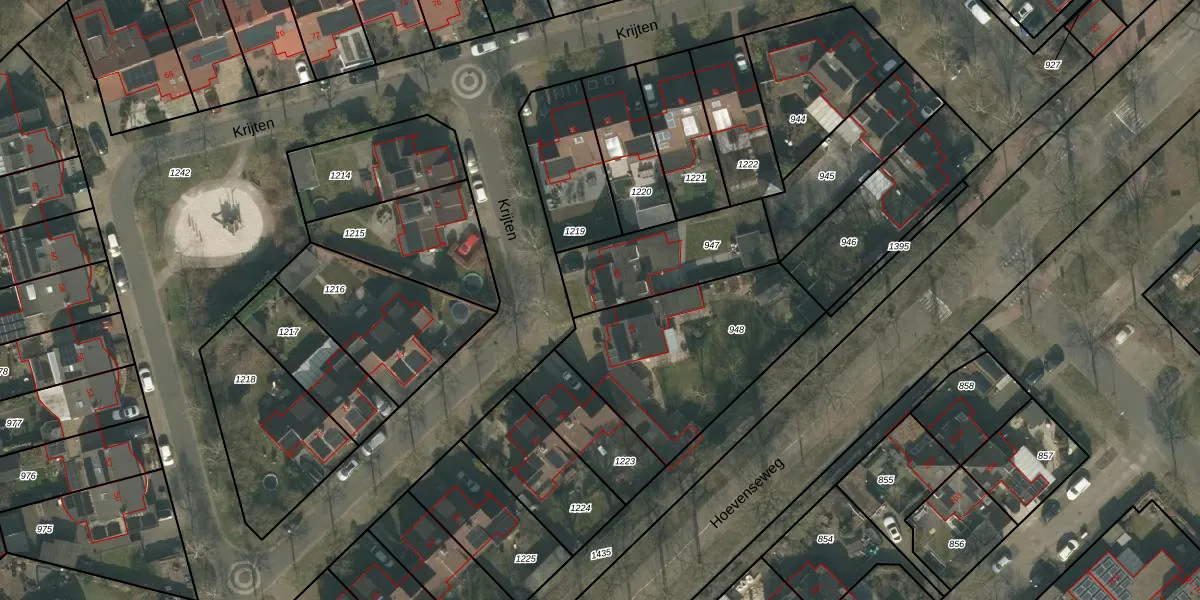 Het perceel waarop Krijten 83 staat heeft een oppervlakte van 404 m². Dit is een groot perceel. De perceeloppervlakte wordt geregistreerd door het Kadaster. Gedetailleerde informatie over de maten van dit perceel kunt u vinden in het rapport Kadastrale kaart met maatvoering van Krijten 83.