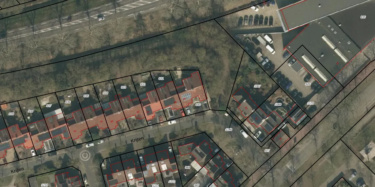 Het perceel waarop Krijten 88 staat heeft een oppervlakte van 342 m². Dit is een groot perceel. De perceeloppervlakte wordt geregistreerd door het Kadaster. Gedetailleerde informatie over de maten van dit perceel kunt u vinden in het rapport Kadastrale kaart met maatvoering van Krijten 88.