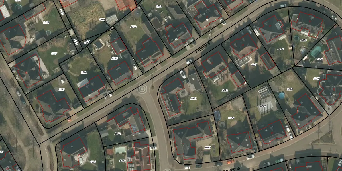 Het perceel waarop Krombos 9 staat heeft een oppervlakte van 768 m². Dit is een groot perceel. De perceeloppervlakte wordt geregistreerd door het Kadaster. Gedetailleerde informatie over de maten van dit perceel kunt u vinden in het rapport Kadastrale kaart met maatvoering van Krombos 9.
