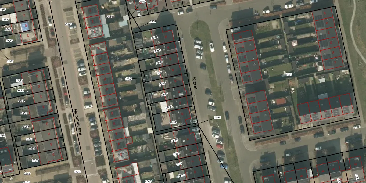 Het perceel waarop Kroon 22 staat heeft een oppervlakte van 150 m². Dit is een middelgroot perceel. De perceeloppervlakte wordt geregistreerd door het Kadaster. Gedetailleerde informatie over de maten van dit perceel kunt u vinden in het rapport Kadastrale kaart met maatvoering van Kroon 22.