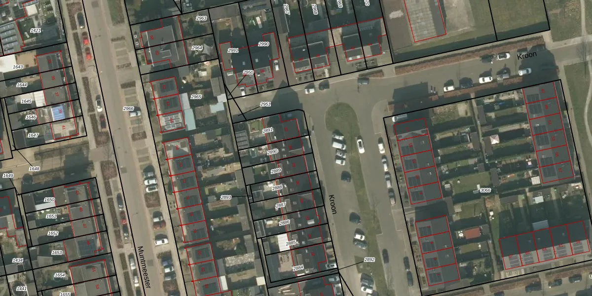 Het perceel waarop Kroon 30 staat heeft een oppervlakte van 150 m². Dit is een middelgroot perceel. De perceeloppervlakte wordt geregistreerd door het Kadaster. Gedetailleerde informatie over de maten van dit perceel kunt u vinden in het rapport Kadastrale kaart met maatvoering van Kroon 30.