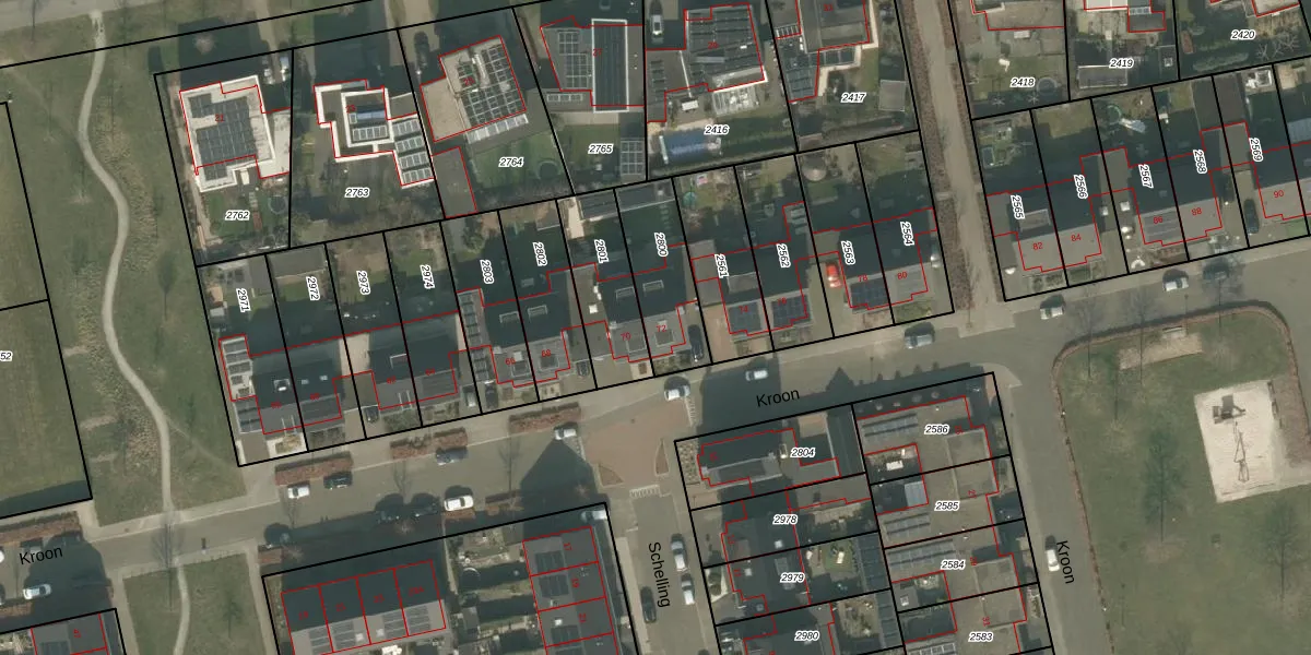 Het perceel waarop Kroon 72 staat heeft een oppervlakte van 265 m². Dit is een middelgroot perceel. De perceeloppervlakte wordt geregistreerd door het Kadaster. Gedetailleerde informatie over de maten van dit perceel kunt u vinden in het rapport Kadastrale kaart met maatvoering van Kroon 72.