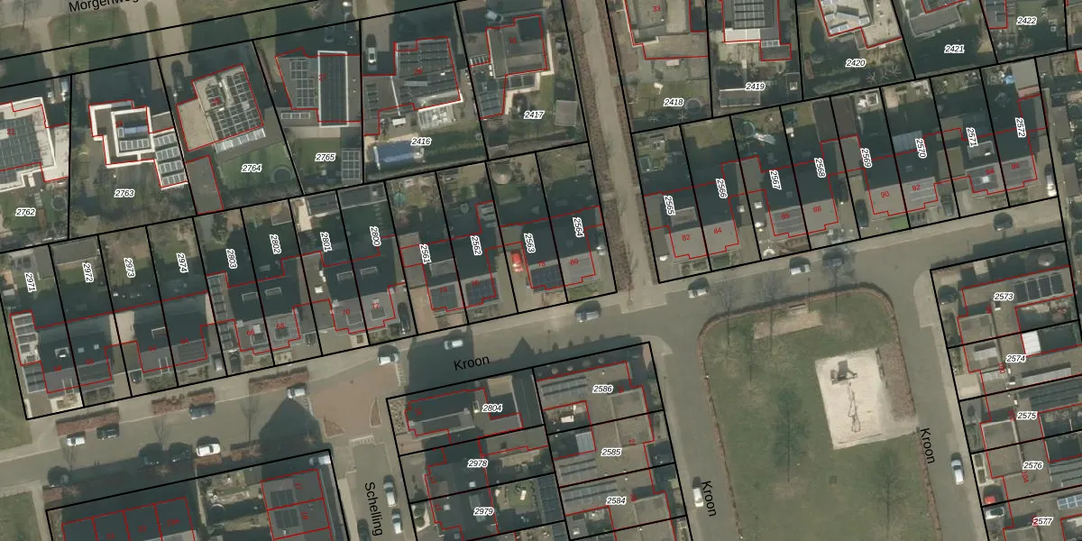 Het perceel waarop Kroon 78 staat heeft een oppervlakte van 270 m². Dit is een middelgroot perceel. De perceeloppervlakte wordt geregistreerd door het Kadaster. Gedetailleerde informatie over de maten van dit perceel kunt u vinden in het rapport Kadastrale kaart met maatvoering van Kroon 78.